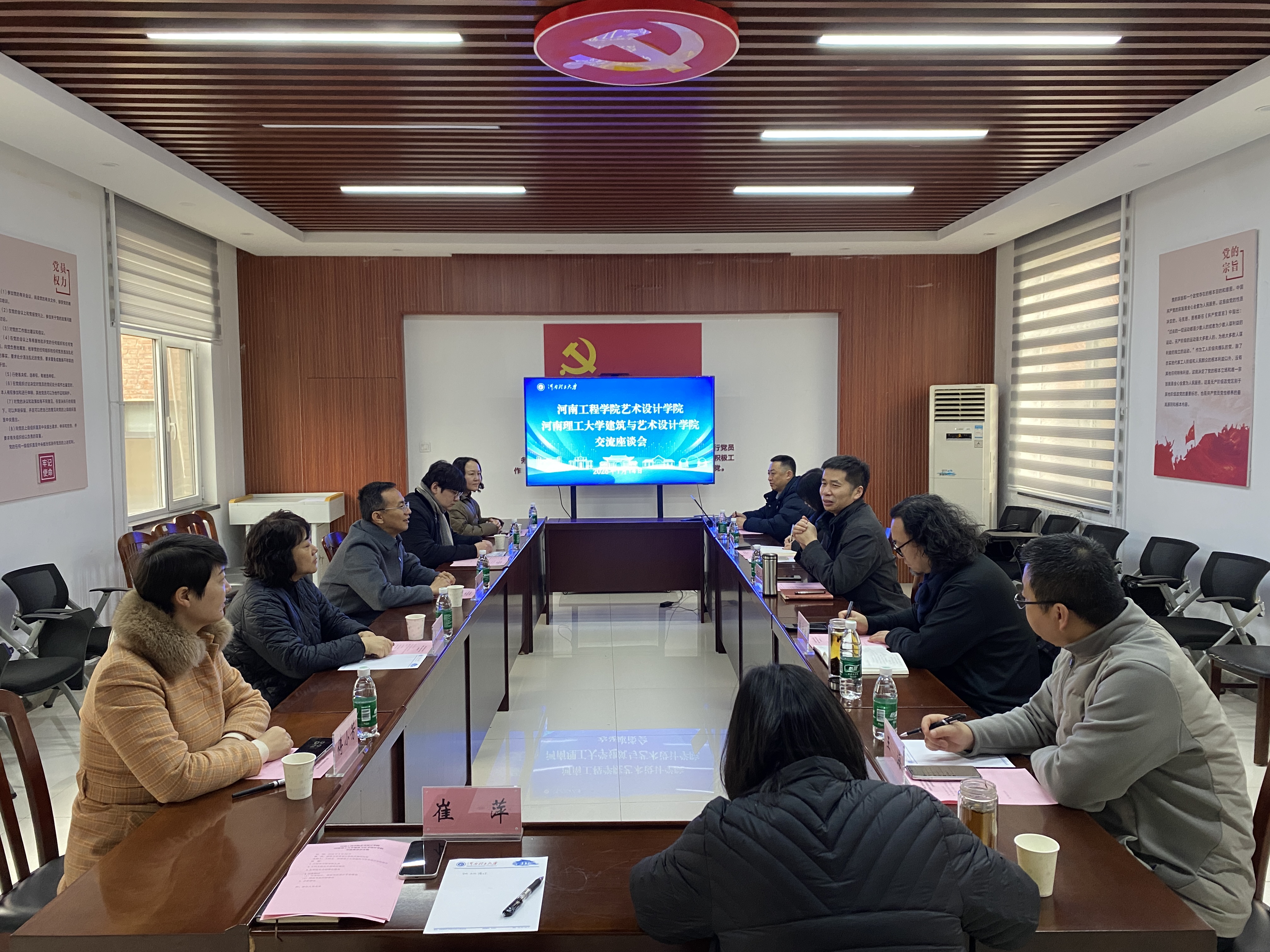 为深化校际合作,共享办学经验,1月14日,河南工程学院艺术设计学院院长朱明一行五人到学校建艺学院开展交流座谈。