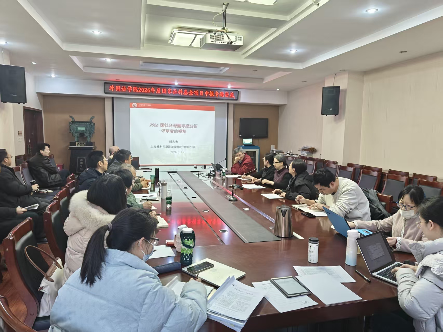 1月15日下午,外国语学院在文综楼311会议室举办国家社科基金项目申报内容撰写辅导会。