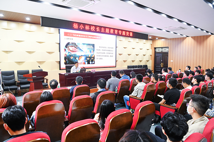 5月25日,校长杨小林在土木学院一楼会议室为干部师生讲授题为《贯彻党的二十大精神 落实立德树人根本任务》的专题党课。