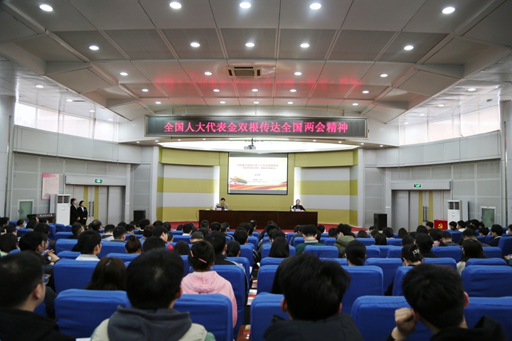 3月15日下午,全国人大代表,我校学术副校长金双根全国两会精神专题报告会《领会贯彻两会精神,提振鼓足发展信心》在力行楼学术报告厅举行。