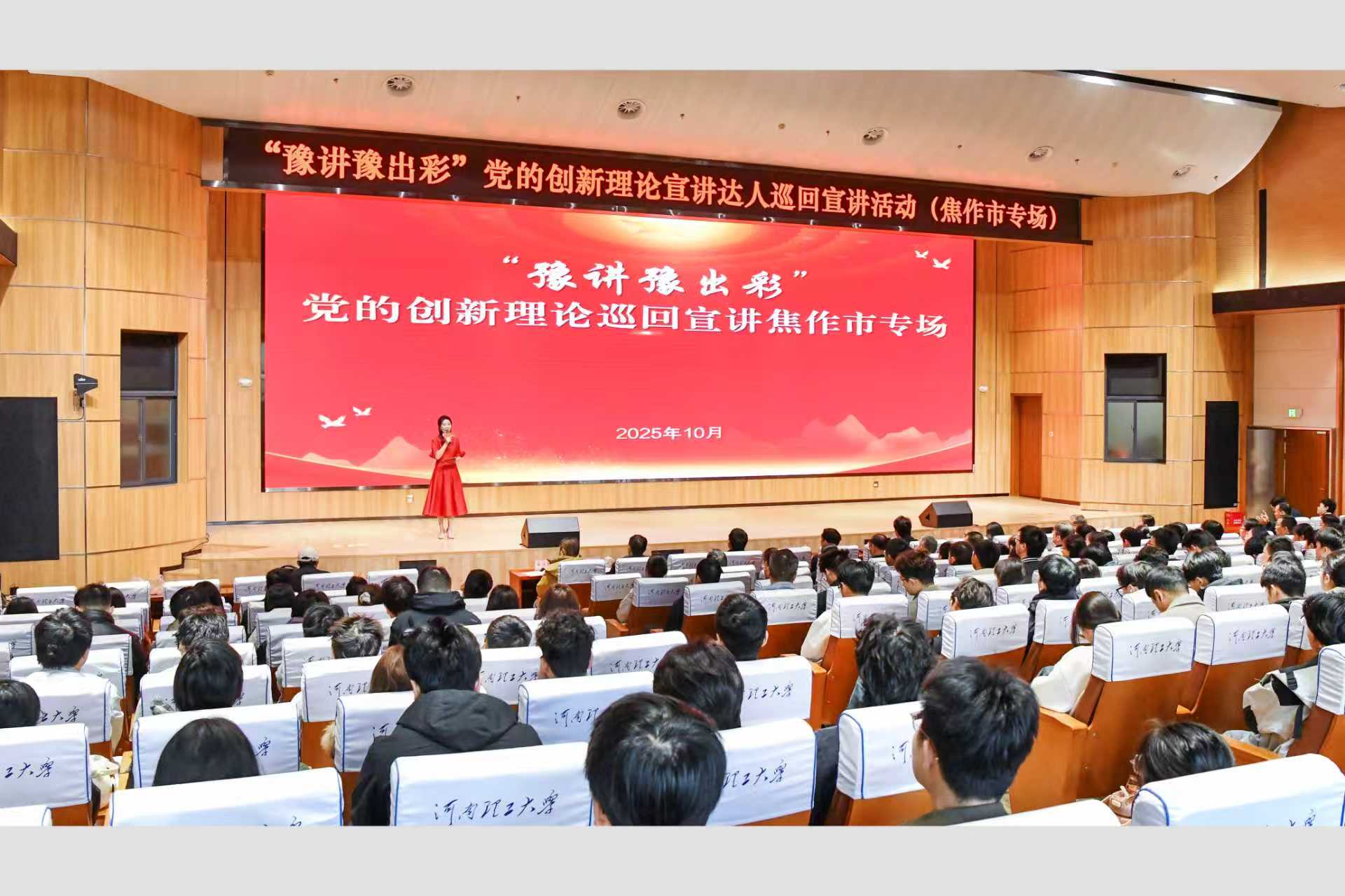 10月23日,由河南省委宣传部主办,焦作市委宣传部、河南理工大学承办的“豫讲豫出彩”党的创新理论宣讲达人巡回示范宣讲活动在学校第二图书馆A厅举办。
