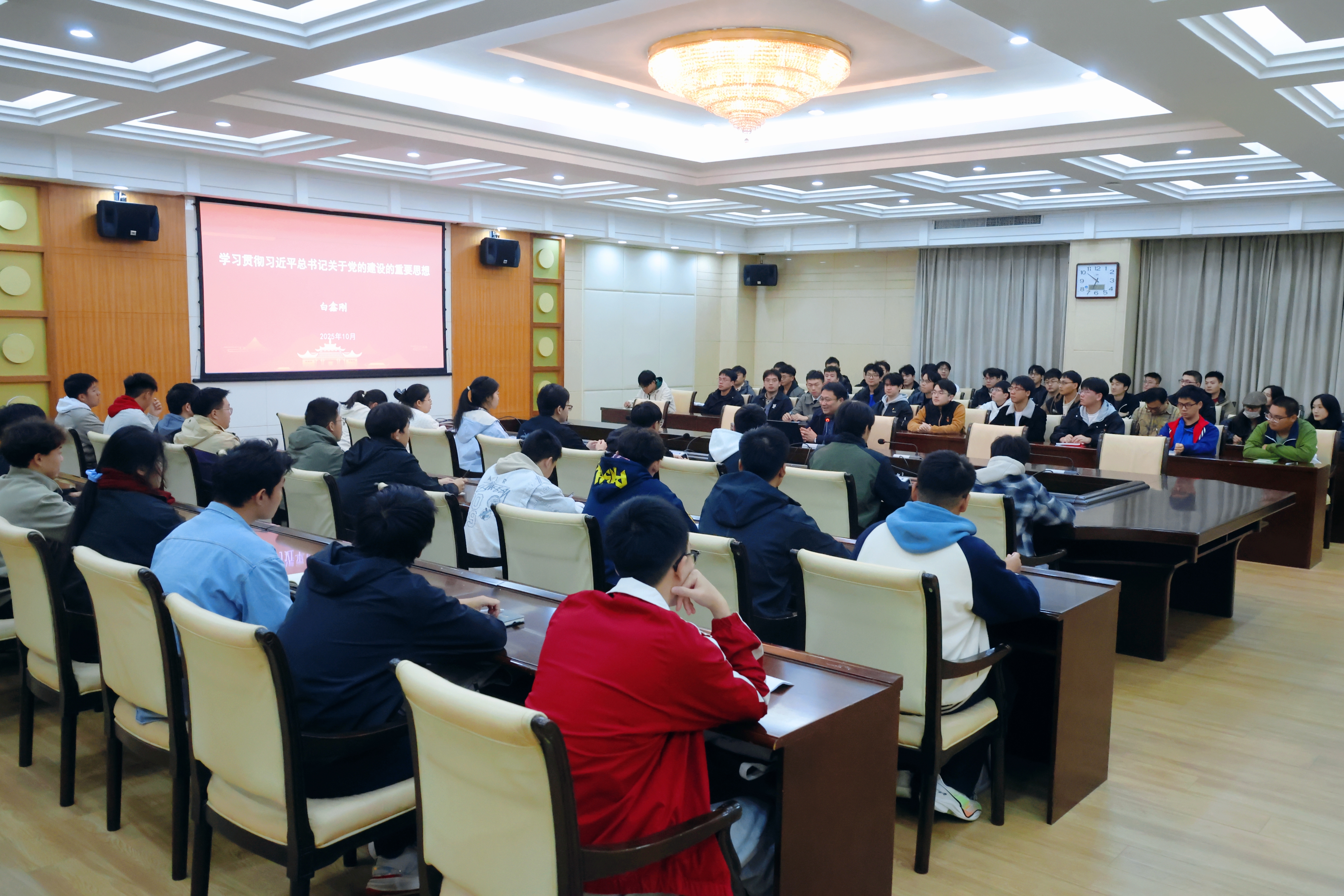 10月21日,学校党委副书记白鑫刚在力行楼一楼会议室为学生讲授《学习贯彻习近平总书记关于党的建设的重要思想》思政课。