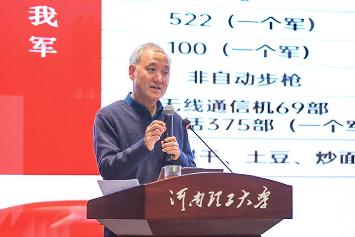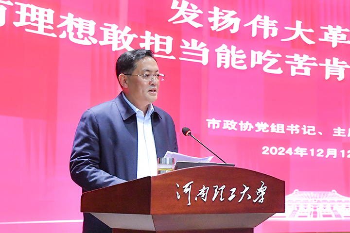 本网讯(记者 段志强/文 李为群 通讯员 韦东星/图)12月12日,焦作市政协党组书记、主席宫松奇在学校力行楼学术报告厅讲授题为《发扬伟大革命精神 做有理想、敢担当、能吃苦、肯奋斗的新时代好青年》的思政课。校党委副书记解伟主持,本科生、研究生、青马社及青马班学生代表230余人参加学习。