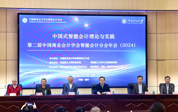 本网讯(通讯员 蒋晓改 张如)10月18日至20日,以“中国式智能会计理论与实践”为主题的第二届中国商业会计学会智能会计分会年会在河南理工大学举行,由财经学院和太行发展研究院承办、财税金融与区域经济研究中心和融教聚联(河南)网络科技有限公司协办。中国商业会计学会副会长、北京工商大学原副校长谢志华,智能会计分会会长王爱国,中国人民大学会计系主任张敏,上海国家会计学院教授杨寅教授等来自全国50所高等院校、企事业单位会计领域的专家、学者、师生近200人参与了此次会议。年会开幕式由财经学院院长刘霞辉教授主持。