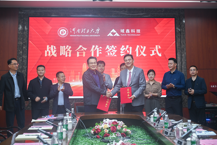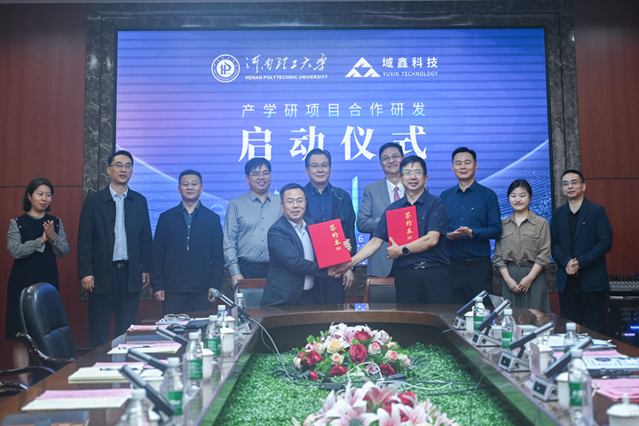 本网讯(通讯员 李欣潮)10月16日上午,河南理工大学、域鑫科技(惠州)有限公司战略合作协议签约暨产学研项目研发启动签约仪式在机械学院217会议室举行。副校长程伟、域鑫科技(惠州)有限公司董事长孙光宇,科技处、机械学院相关领导,以及师生代表参加了仪式。仪式由机械学院院长明平美主持。
