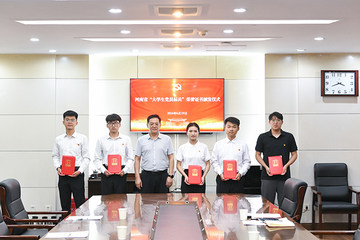 颁发河南省高校“大学生党员标兵”荣誉证书