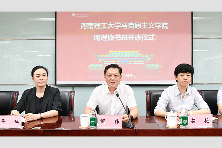 本网讯(通讯员 魏丽霞/文 记者 李为群/图)为深入学习贯彻习近平总书记关于思想政治理论课建设的重要指示精神,弘扬“明理弘道,立德树人”院训,打造马克思主义理论教育教学、研究宣传和人才培养的坚强阵地,5月30日上午,马克思主义学院“明理”读书班在明德楼一楼会议室正式开班。校党委副书记解伟出席开班仪式并致辞,党委宣传部、党委研工部、校团委,以及马克思主义学院党政领导班子成员参加开班仪式,仪式由马克思主义学院党委书记洪振涛主持。