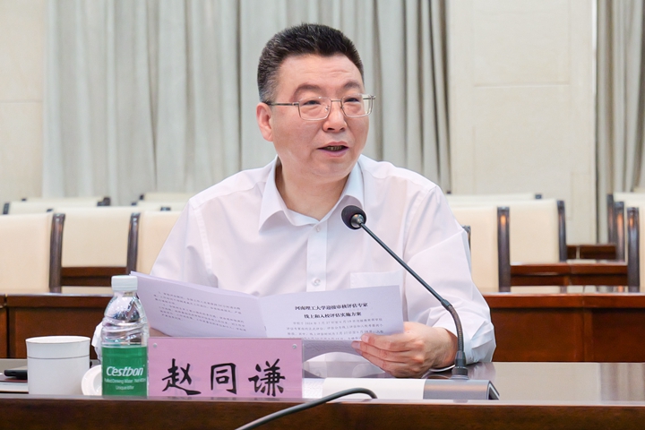 赵同谦指出,新一轮审核评估工作是对我校近年本科教育教学工作的一次全面检验,也是学校提升人才培养质量、促进内涵发展的重要契机。就进一步做好迎评工作,赵同谦提出三点意见:一是明确责任,细化分工。各专项工作组要进一步把握工作重点,细化分工,压实工作责任,按照迎评总体方案统筹推进各项工作。二是强化督办,确保落实。学校评建办要发挥好督办作用,对各专项工作组的工作进展情况进行定期检查和督办,确保各项工作任务落到实处。三是加强宣传,形成合力。审核评估工作是一项系统工程,要加大宣传力度,营造良好的舆论氛围,上下联动、形成合力,高标准做好最后阶段的迎评工作。