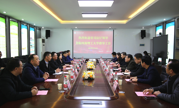 省司法厅社会文化立法处副处长易惊亚、省司法厅社会文化立法处四级主任科员孙广永,焦作市司法局局长闫献亭、市司法局副局长仝长林、市司法局高级法律专务常明、市司法局四级调研员伍赓泽陪同调研,学校校办、文法学院及法学系相关负责人及部分法学教师代表参加座谈会。