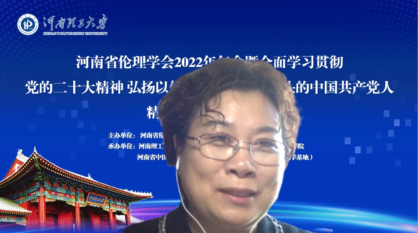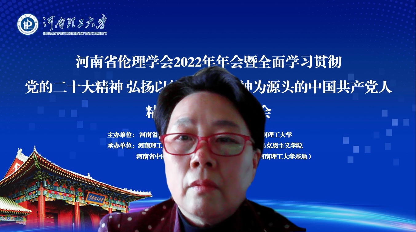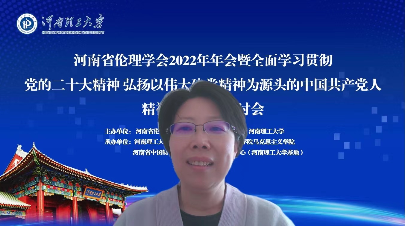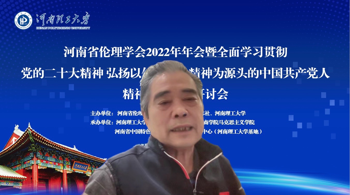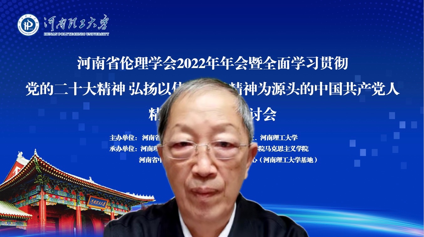 本网讯 12月17日,由河南省伦理学会、《道德与文明》杂志社、河南理工大学主办,河南理工大学马克思主义学院、郑州工商学院马克思主义学院、河南省中国特色社会主义理论体系研究中心(河南理工大学基地)承办的“河南省伦理学会2022年年会暨全面学习贯彻党的二十大精神 弘扬以伟大建党精神为源头的中国共产党人精神谱系学术研讨会”,以“线上线下”相结合的方式隆重举行。