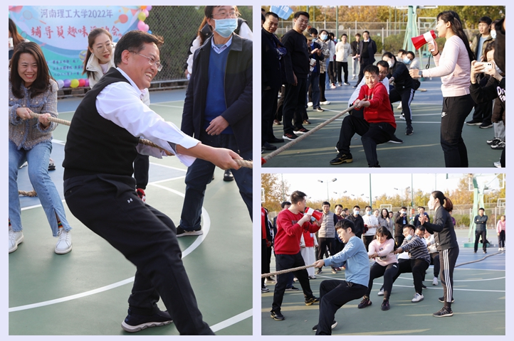 本网讯(通讯员 赵琨 姜冰 黎勇志)疫情防控绷紧警惕之弦,趣味运动放松快乐心情。11月13日下午,由学工部主办,土木学院和外国语学院联合承办的2022年辅导员趣味运动会在南校区西区篮球场和北校区东区篮球场举行,校党委副书记解伟致辞并宣布开幕,开幕式由学工部部长陈昊主持。驻校的各学院专职辅导员和学工部、校团委、研工部、招就处等学工系统教师参加了运动会。