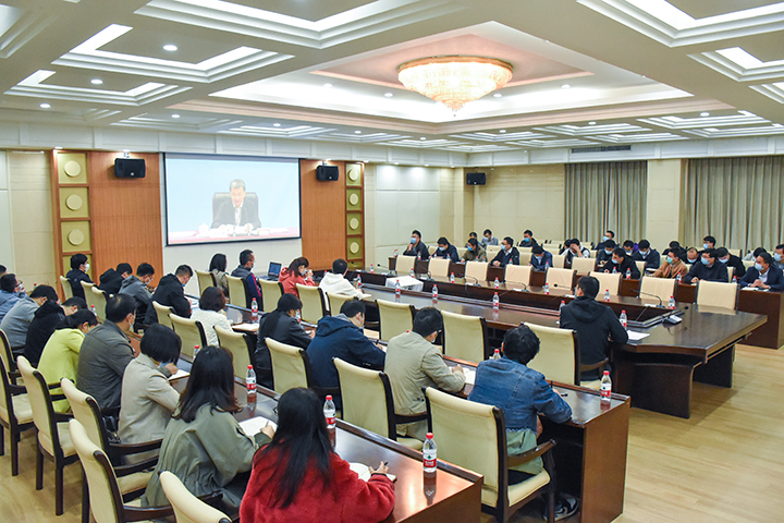 校党委理论学习中心组成员、相关职能部门负责人、各教学学院党委书记参加学习。同时,学校设立分会场,组织辅导员、思政课教师,分别在南校区力行楼一楼会议室和北校区文法学院一楼会议室收看宣讲报告,各单位还组织广大师生通过网络进行分散学习。