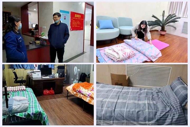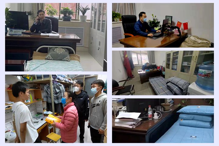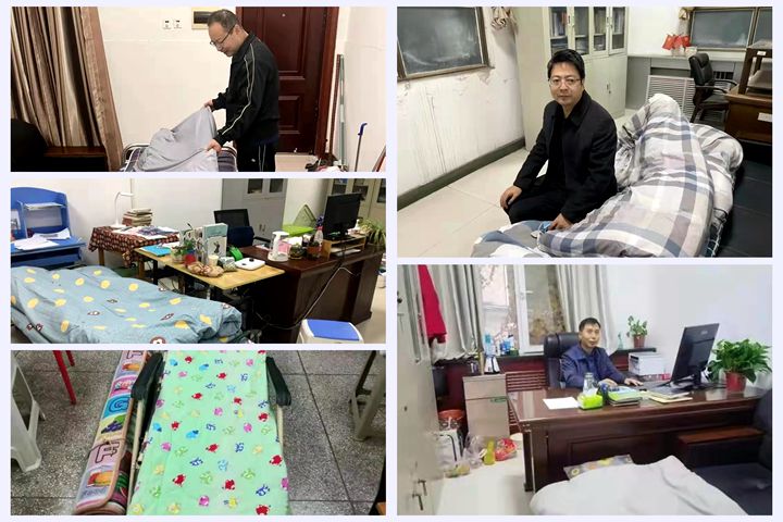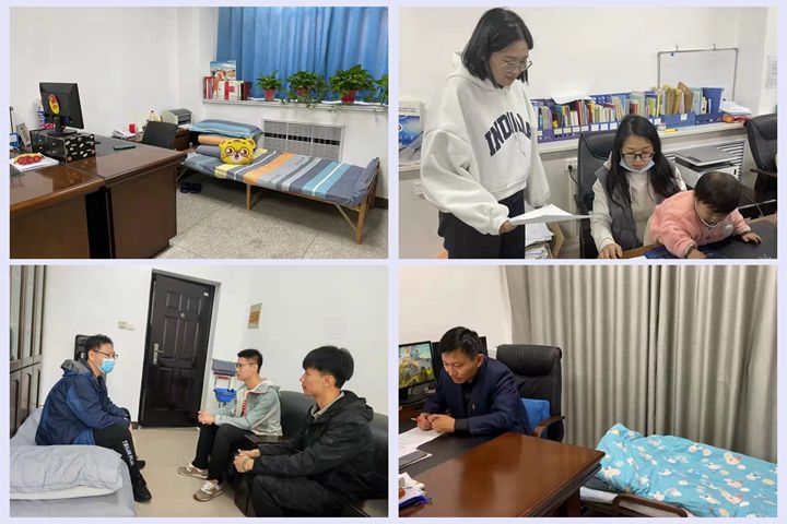 “疫情当前,使命在肩。”10月29日,学校在启动封闭管理后,要求全体辅导员第一时间进入“战斗位置”。接到入驻学校的动员令,大家抢着报名,共有81名老师连夜入住学校。家在校外的辅导员们简单打点行装就住进办公室,晚上休息直接打起“花式”地铺,有的睡折叠床,有的睡沙发,有的睡在私家车里,有的睡到“组合椅子”上,有的睡到会议室长桌上...与此同时,思想政治教育、心理健康教育等工作随着辅导员一起搬进学生宿舍,走进学生生活,强化理想信念教育和价值引领,用实际行动诠释使命担当。