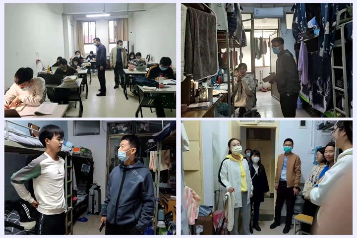 连日来,数信学院党委副书记王明中每天都要固定到访学生宿舍两次。早上查课,督促学生起床,晚上查寝,和学生聊天,了解他们的心理状态。