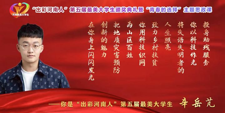 我校电气学院电气工程与自动化(合作办学)2018级学生辛岳芃被评为河南省第五届出彩河南人“最美大学生”