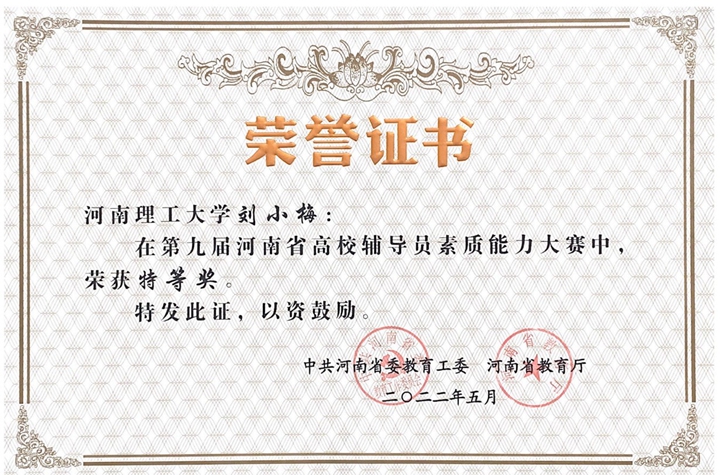 河南省第三届普通高等学校校园文化建设优秀成果一等奖