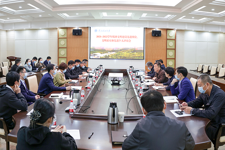 本网讯 (记者 张勐/文 通讯员 郑智源/图)10月25日上午,学校2021-2022学年精神文明建设先进集体和先进个人评审会在力行楼一楼会议室召开。校党委副书记、校文明办主任石培哲主持会议并作总结讲话,校文明办成员单位负责人参加评审会。