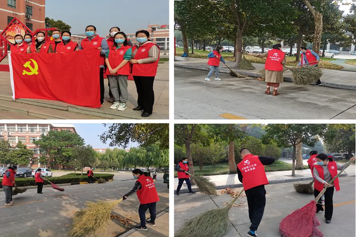 维护校园环境,助力疫情防控。10月25日上午,校长杨小林带领校办党支部党员志愿者们,在南校区春秋大道、明德广场清扫落叶、打扫卫生,共创美好环境、共建美丽校园!