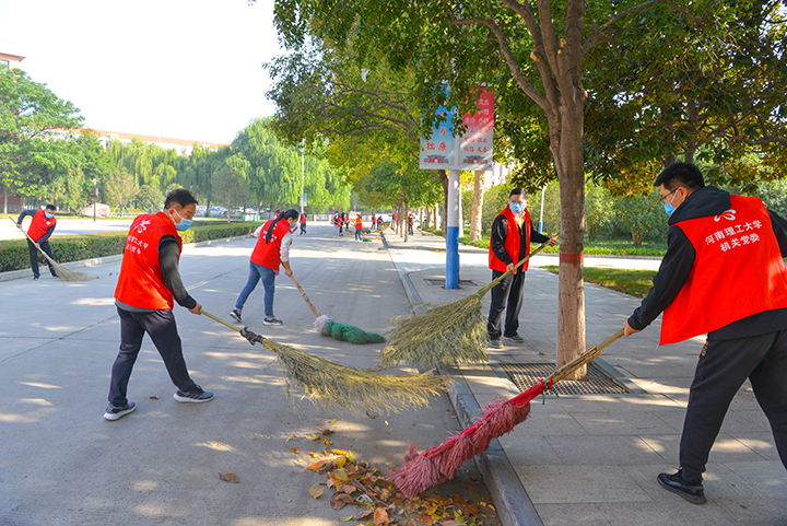 据悉,鉴于目前我省疫情防控形势复杂严峻,为保证校园师生安全,学校实施封闭管理后留校的保洁人员极其有限,给学校环境卫生带来较大影响。党委组织部、党委宣传部联合印发《关于开展“维护校园环境 助力疫情防控”党员志愿服务活动的倡议》,号召各党委、党总支组织有条件进入校园的党员干部职工,在做好个人防护的前提下,积极参与到“维护校园环境 助力疫情防控”志愿服务中来。各教学学院党委以本单位楼宇为阵地,主动认领环境卫生党员先锋岗和责任区,带动师生组建卫生保洁突击队;机关、教辅等党委(党总支)根据工作实际,在做好本单位办公环境卫生的同时,可灵活组建志愿服务队,积极参与校园环境卫生打扫,以义务奉献和辛勤汗水着力提升基层组织力。