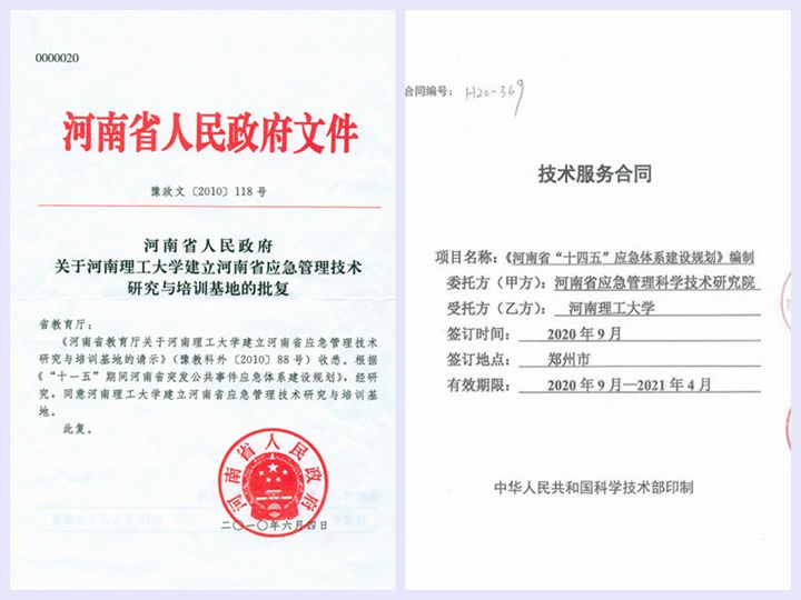 十年来,全面贯彻落实总体国家安全观,聚焦应急管理政策、矿山应急管理、智能化应急管理等领域重大理论和现实问题,整合资源,多方联动,获批全国首家省级应急管理技术研究与培训基地,率先成立河南省安全与应急管理研究中心,组建首家河南(焦作)应急科学产业研究院,发起海峡两岸应急管理论坛。提出应急体系规划编制新理念与新模式,受邀参与国家应急管理科技十四五专项规划论证,河南省应急体系“十三五”“十四五”应急体系规划及《郑州市防汛应急预案》等各类应急预案编制50余项。构建了矿山风险“辨识-分析-评价-处置-预警”全过程风险管控体系,为河南、山西、陕西等80对矿井灾害预防提供支持。参加应急救援决策40人次,开展业务培训1万余人次,科普教育近30万人。