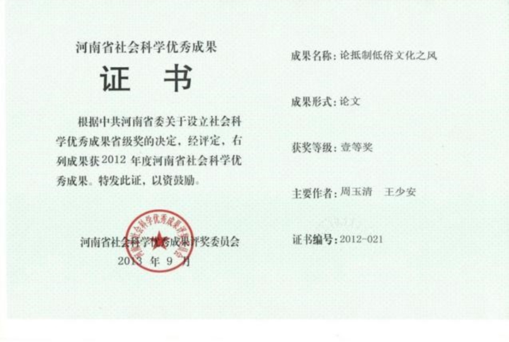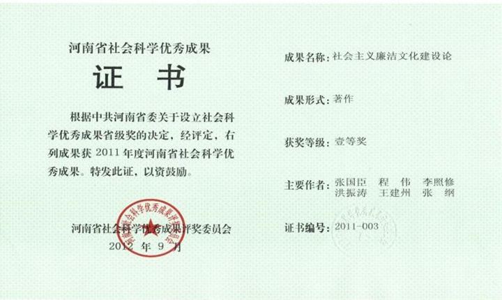 十年来,以支撑学科专业建设为目标,代表性成果产出与规模相协调,以突出解决重大理论和现实问题为导向,加强顶层谋划和前期培育,依托重大项目、高层次人才、高水平团队、高端科研平台,夯实基础研究,推进应用研究,强化交叉研究,高水平成果产出能力不断增强。先后实现河南省社会科学优秀成果奖、中国煤炭行业社科成果奖一等奖突破,累计获省级社科优秀成果奖励102项(一等奖4项,二等奖43项,三等奖55项),地厅级奖励430项;共发表CSSCI、SSCI收录等高水平论文1000余篇(其中“三报一刊”、顶级期刊论文210篇),刊发优秀网络文化成果和理论性文章260余篇(人民网、光明网等省级以上官方网络媒体75篇);出版学术著作290余部(人民出版社等全国百佳、省教育厅权威出版社103部);被党中央国务院相关部委、省委省政府及部门采纳或领导批示决策咨询成果52项,被人民日报社《内部参阅》、教育厅《资政参考》等省级以上内参刊用决策建议87项。