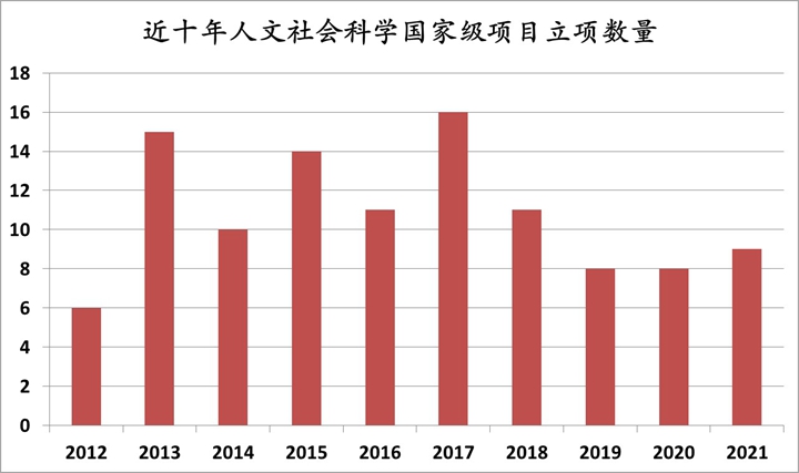 十年来,以服务学科专业建设为引领,聚焦重大项目承担能力提升,发挥能源经济、应急管理、太极文化、乡村振兴、生态文明等五张特色品牌优势,按照“聚焦重大、自下而上、重点突破、引领发展”的原则,分类分层设立国家社科基金重点、基本科研业务费、校内人文社科基金等培育专项,打造多级项目培育体系,建立全校教师高水平人文社科研究数据库,构建“学校-学院-平台团队”校内外三级项目联动论证体系,实施“学院-平台-团队”协同跟踪项目机制。先后实现国家社科基金重点、艺术学、教育学、冷门绝学项目零的突破,获批国家社科基金项目51项(重点项目3项),教育部人文社会科学研究项目57项,省部级项目270项,立项经费达5560万元。