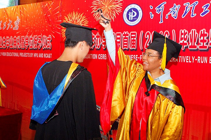 2016年北卡农工州立大学工学院院长罗宾·科洛博士为中外合作办学项目毕业生拨穗授学位