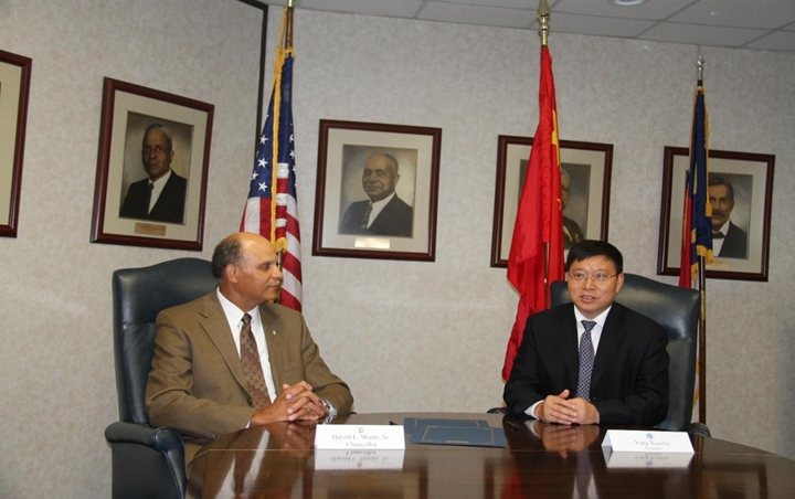 2016年校长杨小林率团出访美国北卡罗来纳农工州立大学