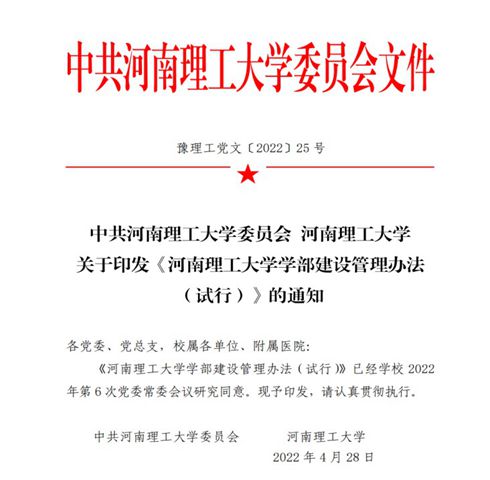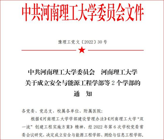 7. 成立安全与能源工程、测绘与信息工程2个学部。为推进一流学科创建工作,学校制定了《河南理工大学学部建设管理办法(试行)》(豫理工党文〔2022〕25号),成立安全与能源工程、测绘与信息工程等2个学部,下设安全与能源工程学部、测绘与信息工程学部办公室并任命专职负责人。安全和测绘学部分别制订了《安全与能源工程学部运行管理办法(试行)》《测绘与信息工程学部运行管理办法(试行)》。学部建设以促进学科交叉融合发展、提升学校综合实力为目标,以优化资源配置为保障,推动国内一流特色高水平大学建设。