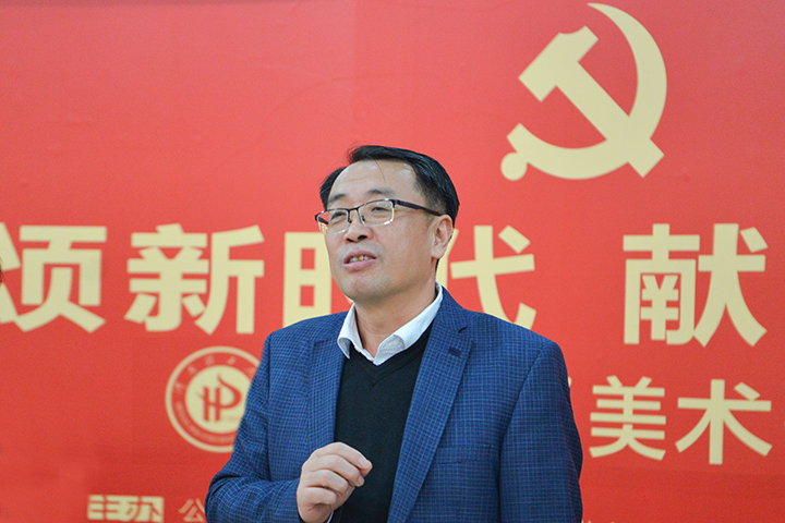 本网讯(通讯员 薛茜/文 记者 李为群/图)为庆祝党的二十大胜利召开,用笔墨丹青讴歌党的丰功伟绩,切实提升我校大学生的综合艺术素养,10月17日上午,学校“赞颂新时代·献礼二十大”美术作品展暨启动仪式在南校区明德楼三楼公共艺术展厅举行。副校长沈记全出席仪式并讲话,启动仪式由公共艺术教育中心主任孙娟主持。