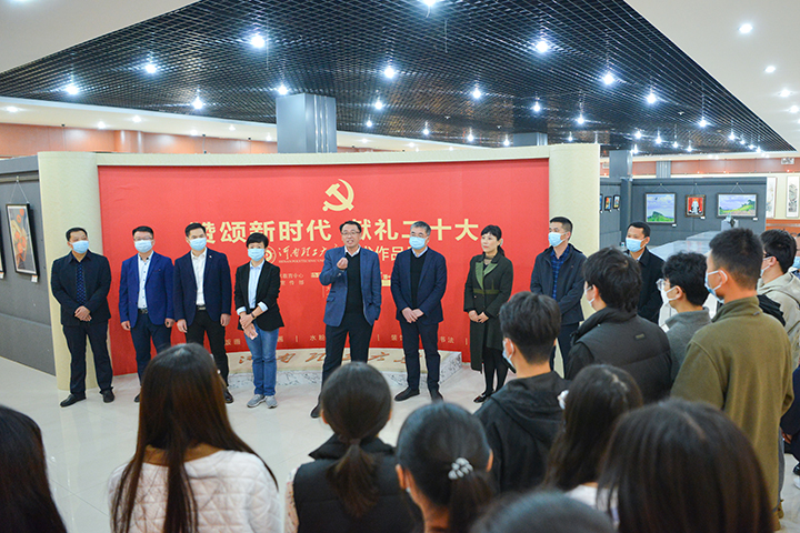 沈记全在启动仪式讲话中指出,此次主题美术作品展的举行旨在以促进学生全面发展为中心,落实“艺术育德,艺术育智”理念,发挥美育在理工类大学教育教学中的重要作用,不断提升学生艺术素养,持续推进我校广大学生德、智、体、美、劳全面发展。书画艺术展主题鲜明、内涵丰富、形式鲜活,通过高雅的书画艺术作品生动彰显中国共产党人的精神特质和优秀品质,丰富了学校校园文化内涵,表达了师生的爱党爱国情怀,展现出师生的良好艺术修养和艺术审美情趣,向党的二十大胜利召开献上了一份文化艺术厚礼。