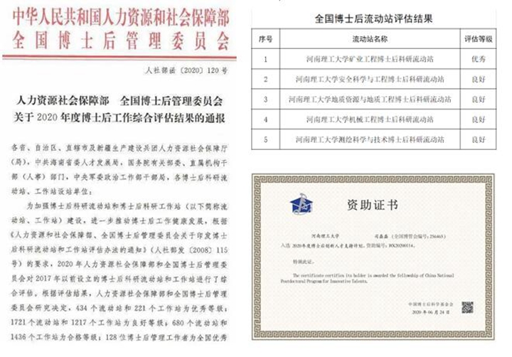 十年来,学校博士后科研流动站建设成效明显,设站数量由2个增至6个,在站人数由34人增至398人,共与省内外70余家大中型企业签订联合培养协议。博士后研究人员共获批国家自然科学基金、中国博士后科学基金及河南省博士后科研资助项目309项,资助金额3500余万元;5人先后获得河南省和国家博士后创新人才支持计划。在2020年全国博士后科研流动站评估工作中,学校参评的5个流动站共获得1优4良的优异成绩。