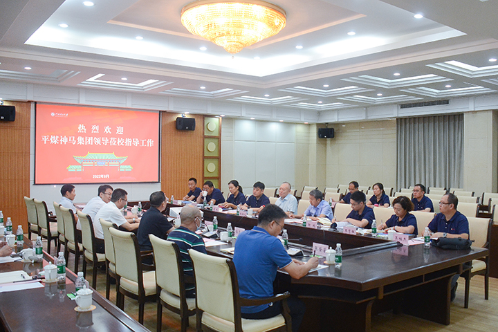 赵同谦代表学校对王新义一行的到访表示欢迎,对中国平煤神马集团长期以来给予学校的支持和关心表示感谢。他表示希望通过此次对接活动,继续加强双方的沟通与合作,在煤炭安全开采传统领域的科技合作更加深入、更加全面,在煤焦化工、新能源新材料、固体废弃物再利用等方面的合作攻关进一步拓展。