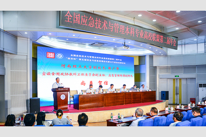 本网讯 (通讯员 牛丽思/文 记者 李为群/图)8月25日上午,全国应急技术与管理本科专业高校联盟第二届年会暨太行应急高峰论坛以线上线下相结合的方式在我校召开,学校在力行楼学术报告厅举行年会论坛开幕式。国家减灾委专家委员会副主任、国务院原应急管理专家组组长闪淳昌,教育部学校规划建设发展中心创新发展处处长刘志敏,河南省应急管理厅副厅长马天希,辽宁工程技术大学校长岑松,全国政协委员、中国信息通信科技集团原董事长童国华,中国科学院大学应急管理科学与工程学院院长、工业和信息化部信息技术发展司原一级巡视员李颖,全国应急技术与管理本科专业高校联盟理事会理事长、中国劳动关系学院副校长刘丽红,我校校长杨小林、副校长沈记全、校领导郑广华,教育部安全科学与工程类专业教学指导委员会秘书长徐景德,全国应急技术与管理本科专业高校联盟常务副理事长唐彦东出席开幕式,全国应急技术与管理本科专业联盟高校和其他兄弟院校共计200余人线上线下参加会议。会议开幕式由沈记全主持。