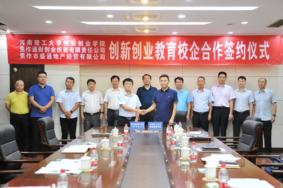 本网讯(通讯员 徐春浩 邓小玲)8月5日,学校创新创业学院与焦作通财创业投资有限责任公司、盛通地产经营有限公司正式签约,双方在“资源共享、优势互补、互利互惠、务实高效、共同发展”的原则下,将就创新创业项目孵化、共建校外创新创业教育实践基地、成果转化等方面开展合作。