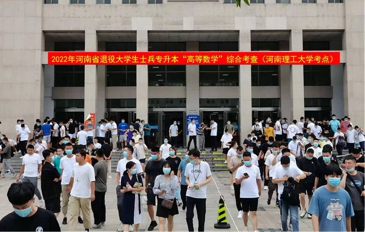本网讯 (通讯员 杜文)7月5日下午和11日下午,河南理工大学2022年普通高考招生第二学士学位考试、河南省退役大学生士兵专升本“高等数学”综合考查先后在我校南校区3号教学楼举行。