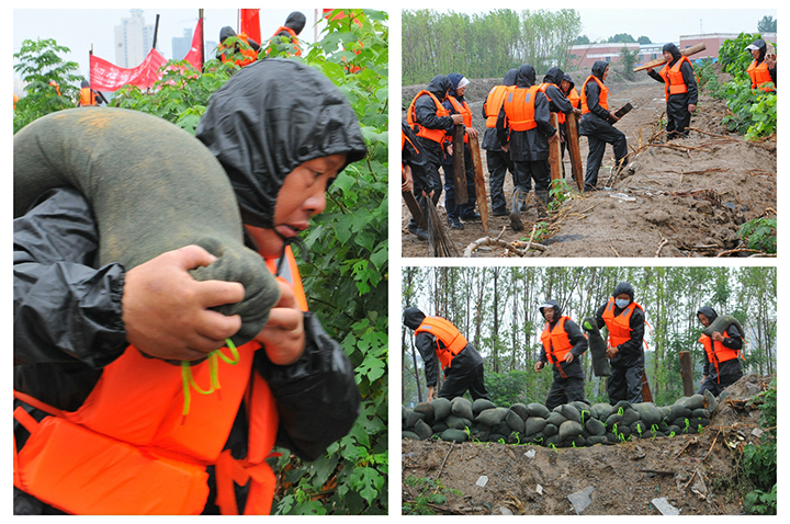 随后,学校防汛救灾应急抢险小分队迅速集合,冲向抢险一线,有的两人一组装沙袋,有的准备木桩,有的准备钢丝,有的扛起沙袋冲向堤坝……抢险队员们分工明确,处理险情紧张有序。第一小分队下来,第二小分队就接上去,抢险过程有条不紊。