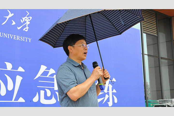校防汛救灾工作指挥部副指挥长、办公室主任、副校长翟耀南主持演练活动