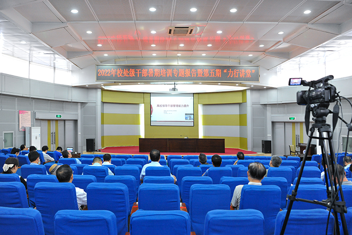 本网讯 (记者 赵佳/文 李为群/图)6月29日,学校在力行楼学术报告厅举办2022年校处级领导干部暑期培训专题报告暨第五期“力行讲堂”。中国人民大学劳动人事学院教授徐世勇应邀在线作了题为《高校领导干部管理能力提升》的专题报告。全体校处级干部参加培训,报告会由副校长朱建光主持。