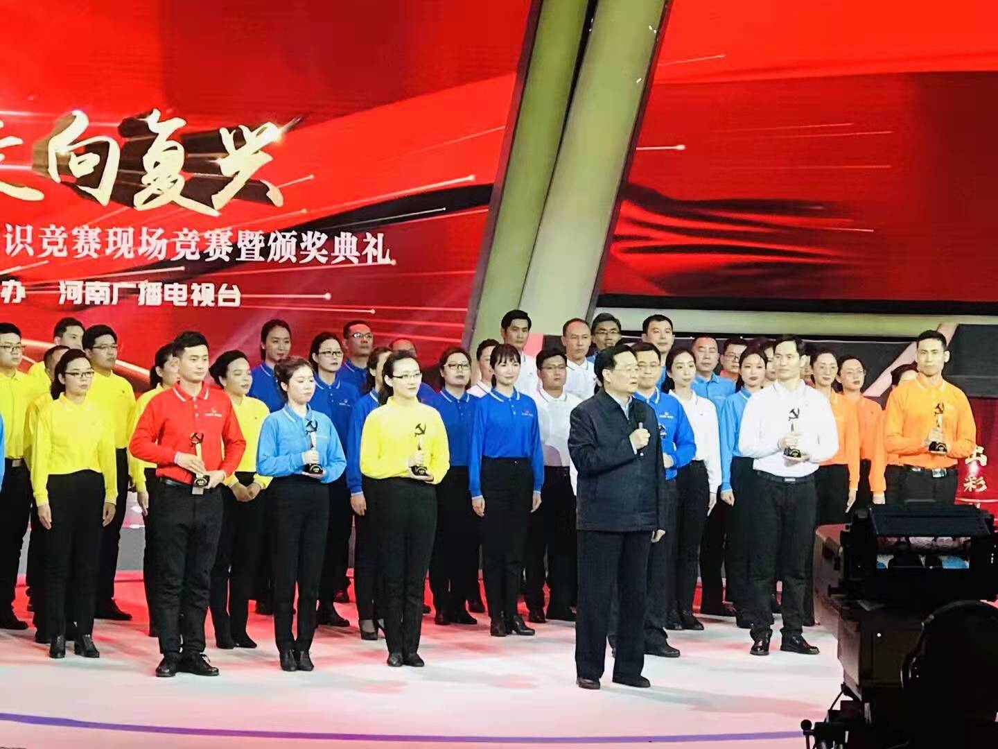 本网讯 11月23日晚,由省委组织部主办的全省县处级以下党员干部“四史”知识竞赛现场竞赛暨颁奖典礼在郑州举行。省委书记王国生,省委常委、组织部部长孔昌生,省委组织部常务副部长苏长青出席并为获奖选手颁奖。我校荣获“优秀组织单位”称号,也是全省唯一获得此项荣誉的本科院校,被省委组织部通报表扬。应急管理学院党委书记陈昊在全省26.8万余名参赛人员中脱颖而出,入围全省前48名,并以队长身份带领团队获得二等奖。