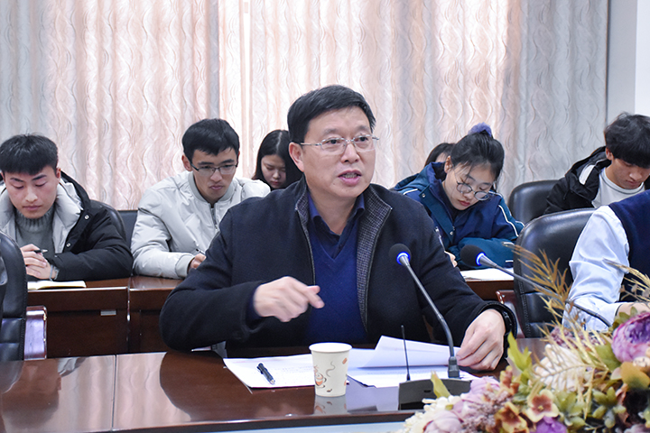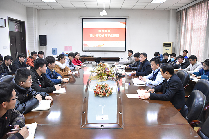 本网讯(通讯员 丁昕/文  郑智源/图)11月24日下午,校长杨小林在安全学院304会议室与安全学院学生进行座谈交流,校办、学生处、安全学院相关负责人,安全工程专业2019级4班全体同学,安全学院学生会、社团干部代表近40人参加座谈。座谈会由安全学院党委副书记李怀珍主持。