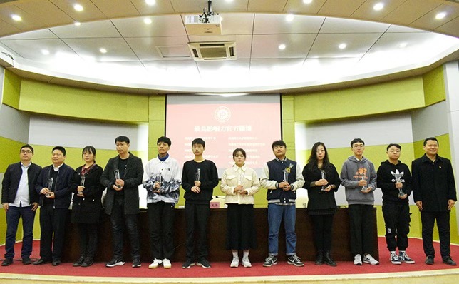 会议为获得河南理工大学2019年度“最具影响力官方微信” “最具影响力官方微博”荣誉称号的新媒体平台代表进行了颁奖。