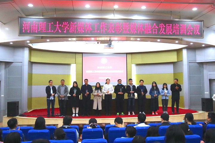 本网讯(记者 鲁小茜 通讯员 张宇星 邢子涵)11月14日,学校在南校区力行楼学术报告厅举行新媒体工作表彰暨媒体融合发展培训会。会议由党委宣传部主办,邀请河南省教育厅新闻中心新媒体部主任黄发强、《中国教育报》驻河南站资深记者李见新作系列主题报告。宣传部有关负责人、相关科室人员,各单位师生通讯员代表及校融媒体中心学生记者、部分团学组织学生骨干和网络评论员代表近300人参加会议。