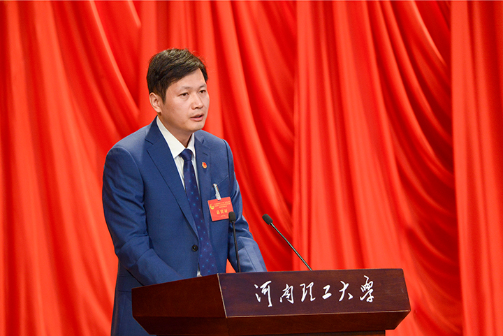 支光辉代表共青团河南理工大学第二届委员会作题为《不忘跟党初心,牢记青春使命,团结带领全校团员青年奋力谱写新时代国内一流特色高水平大学建设的壮丽青春篇章》的工作报告。报告回顾了自第二次团代会以来,我校各级团组织带领广大团员青年高举团旗紧跟党走,以习近平新时代中国特色社会主义思想为指导,紧紧围绕立德树人根本任务和学校中心工作,服务青年成长成才,大力培育和践行社会主义核心价值观,在思想政治引领、基层组织建设、学生综合素质提升等方面推动团的事业取得新的发展。报告指出,要以高度的历史使命感和责任感,奋力拼搏、抢抓机遇,构建以团的组织力、引领力、服务力和大局贡献度为主体单元的“三力一度”工作格局,扎实开展思想政治引领“筑梦”工程、基层建设“基石”工程和青春建功“万象”工程,不断开创我校共青团工作的新局面。