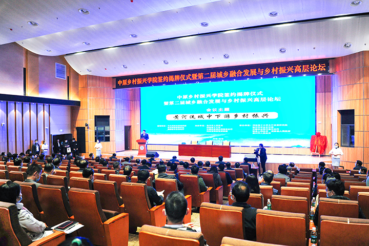 中原乡村振兴学院签约揭牌仪式暨第二届城乡融合与乡村振兴高层论坛会现场