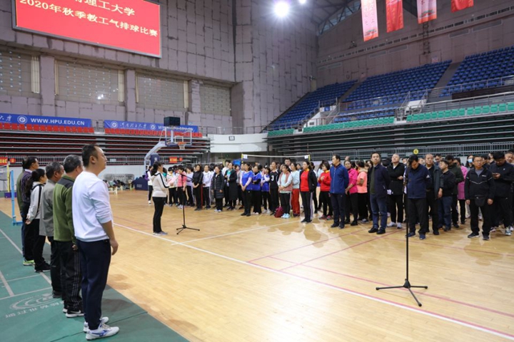 本网讯(通讯员 尹铁军 赵晓宝)10月27日下午,由校工会主办,校气排球协会和土木工程学院承办的2020年秋季教职工气排球比赛在南校区体育馆开幕。校工会、体育场馆管理中心等相关单位负责人,学校各分工会领导及参赛运动员参加开幕式。开幕式由校气排球协会会长尹铁军主持。