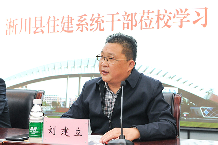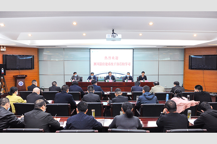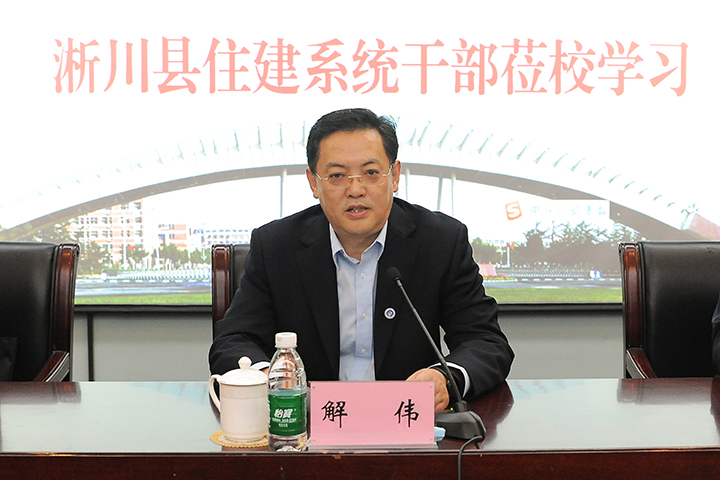 解伟致词,介绍了我校的历史沿革、办学规模、师资力量、学科特色等方面的情况。他指出,近年来,淅川县脱贫攻坚工作取得了显著成效,今年2月,河南省政府宣布淅川县退出贫困县序列,特向淅川县脱贫摘帽表示祝贺。解伟表示,一直以来,学校党委高度重视校地“结对帮扶”工作,提升政治站位,坚持把校地“结对帮扶”作为必须完成的任务,扛在肩上、落在行动中。学校先后分27批次,410人次到淅川县开展设计帮扶、医疗帮扶、科技帮扶、培训帮扶、产销帮扶等工作。淅川县也先后5批次200余人次到我校开展业务培训等访问交流活动。学校与淅川县企、事业单位签订《产学研合作协议》、《医疗卫生合作帮扶协议》等合作协议10项。“结对帮扶”工作在河南省的脱贫攻坚成效考核中连续两年也获评“好”的格次。“结对帮扶”工作也受到《新华网》、《凤凰网》、《河南日报》等社会主流媒体27件次的宣传报道。本期淅川县住建系统干部业务能力提升培训班,就是发挥学校在人才培训方面的优势,落实学校对淅川县脱贫攻坚工作方案的具体举措。并希望以此为契机,进一步加强学校与淅川县之间的交流合作,为打赢脱贫攻坚战作出积极贡献。