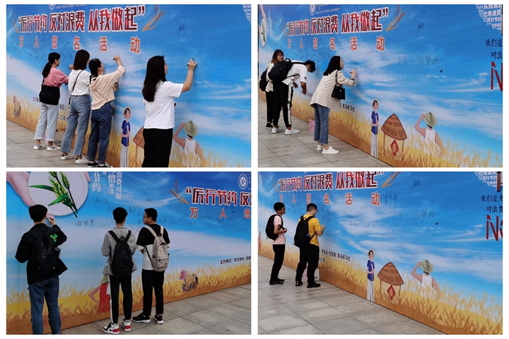 活动中,广大师生自发地在签名墙上郑重签下自己的名字。很多师生主动在签名墙前合影留念,并以发送朋友圈等方式积极号召身边的同学和朋友一起践行厉行节约、反对浪费的理念。签名墙上增加的不仅仅是一个个名字,更是一个个心愿和一份份承诺。参加签名活动的师生纷纷表示,要从小事做起、从点滴做起、从现在做起,争做厉行节约、反对浪费的倡导者、践行者、监督者和宣传者。