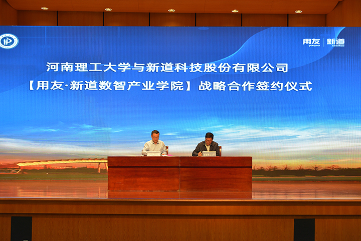 副校长张锟与新道科技股份有限公司助理总裁刘锦签署“用友·新道数智产业学院”战略合作协议