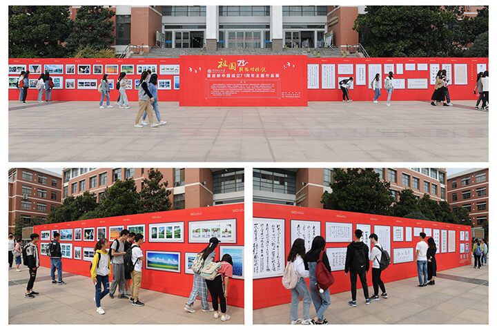 本网讯(记者 苏丽敏/文 李为群/图)在新中国71华诞来临之际,为营造浓郁的国庆氛围,学校在南校区世纪广场图书馆前举办了“祖国,我想对你说”——喜迎新中国成立71周年大型师生主题作品展。展览由党委宣传部主办,公共艺术教育中心承办,青年马克思主义者研习社协办,活动中,学校将其与“把灾难当教材,与祖国共成长”主题教育和大学艺术展演活动充分结合,旨在大力加强爱国主义教育,进一步引导广大师生把灾难当教材、把困难当磨砺,在灾难面前与国家共患难、与人民共进步。